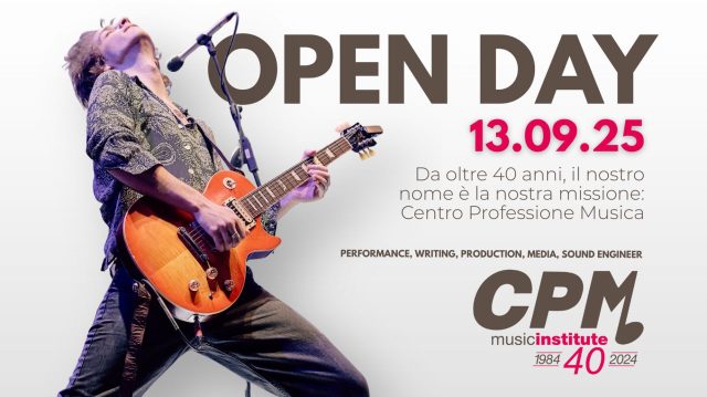 Sabato 13 settembre il CPM Music Institute di Milano (Via Elio Reguzzoni, 15) apre le sue porte a tutti coloro che amano la musica e che vogliono avvicinarsi o approfondire lo studio di uno strumento, per far conoscere l’offerta didattica della Scuola di Musica fondata e presieduta da Franco Mussida per l’a.a. 2025/2026!