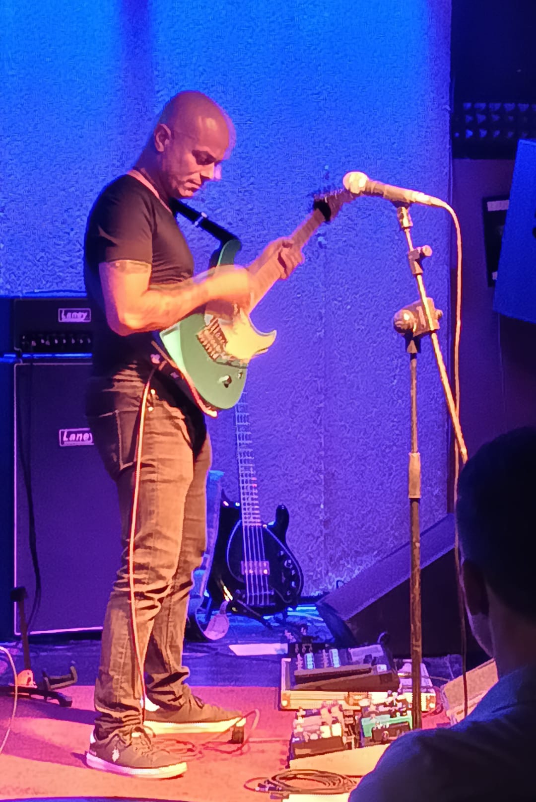 A riscaldare e ad aprire la serata di giovedì 9 ottobre ci ha pensato un altro virtuoso della sei corde, Andrea Palazzo, chitarrista partenopeo, dal forte sapore rock. Dotato di una tecnica eccelsa, la sua chitarra ha accompagnato musicisti del calibro di Peppino Di Capri, Jimmi Sax, Eugenio Finardi, Mario Venuti e tantissimi ancora.